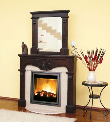 Портал для электрокамина: VERONICA Эксклюзивный портал с большим зеркалом из натурального дерева, с вставкой из натурального полированного мрамора Carrara или Crema Marfil.