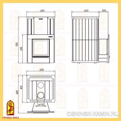 ОбЪем парной: 15-27 м3 Диам.дымохода: 150 мм Глубина: 840 мм Ширна: 630 мм Высота: 920 мм Масса печи: 120 кг Масса камней: 230 кг |