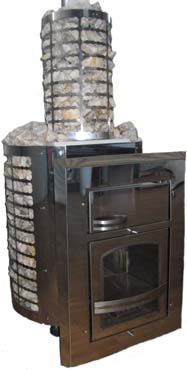 Основа работы печи «Чародейка МК» построена по принципу двойной камеры. Первая камера предназначена для горения дров, вторая камера удаляет накопившиеся в результате нагревания газы и обеспечивает газогенерацию. Большую роль в теплообмене печи играет каменка, которая контактируя с вторичной камерой после растопки, быстро поглощает тепло и помогает поддерживать в парной температурный баланс. Функциональным дополнением к печи «Чародейки МК» является вместительная труба-каменка. Труба-каменка делает внешний вид печи более привлекательным и добавляет к тепловой мощности до 60 кг камней. Печь «Чародейка МК» не нужно длительно протапливать, сразу после растопки она стремительно нагревает помещение. С помощью особых конвекционных регистров, специально разработанных для топки печи «Чародейка МК», теплый воздух постоянно обновляется, равномерно нагревая парную и долгое время сохраняя внутри оптимальную температуру. Использование для засыпки талькохлорита поддерживает высокие аккумулятивные свойства печи «Чародейка МК». Надежность и долговечность печи гарантирует топка, которая изготовлена из нержавеющей стали 3 мм с 18% содержанием хрома и высокой жаростойкостью. Печь Печь «Чародейка МК» можно также похвалить за огромные объемы парообразования, ведь в роли создателя стабильного мощного пара выступают 300 килограмм банного камня. С точки зрения декораторских решений, печь «Чародейка МК» предоставляет обладателю грандиозные возможности. Вы сможете выбрать самые оригинальные и роскошные варианты отделки печи для своей парной и осуществить самые смелые дизайнерские проекты в таком нетрадиционном для творчества помещении. Необыкновенный белый кварц придаст печи белоснежный или дымчатый оттенок, ощущение чистоты и уюта. Отделка из зеленоватого жадеита придется по вкусу тем, кто предпочитает роскошь во всем. Более спокойные оттенки и ощущение покоя придаст помещению каменный массив из талькохлорита, а малиновый кварцит сделает парную более романтичной. С таким громадным выбором облицовочных материалов Вы можете сделать эксклюзивную отделку печи, опираясь на свой вкус и цветовые пристрастия. Камень принесет в парную не только определенную энергию и настроение, а так же поможет создать индивидуальный, комфортный интерьер. Печь «Чародейка МК» надежна в эксплуатации и проста в уходе. Она оснащена технической дверью второго уровня, благодаря которой, всю печь, дымоход легко и удобно чистить от скопления сажи и грязи. Еще одной особенностью печи «Чародейка МК» является повышенная прочность и устойчивость основной конструкции, которая обеспечивается дополнительными регистрами. Этот способ укрепления формы печи расширяет дополнительную теплопроводящую площадь и добавляет процессу нагревания стабильности.